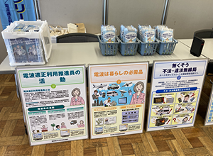 ブースを設け、「あなたは知ってる?電波のルール」のポスター、パネル等を掲出し、リーフレット・周知啓発グッズの配布、「電波に関する困った、知りたいこと」の相談受付を通して、主に「技適マーク」に関する周知啓発を行いました。