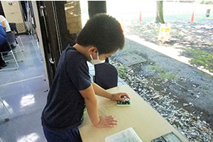 その後に、AMラジオ製作を行いました。一人で頑張る児童や、親子で協力したりする姿もあり、次々と部品をハンダ付けして全員が完成させました。