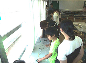 屋内と屋外でラジオを聴き比べて受信状況の違いを体験し、子供達から、「雑音がなくなった。」、「建物の陰で音量が変わった。」などの多く発表がありました。また、最後の電波クイズでは、技適マーク、電波利用のルールなどについて、参加者の全員が正解することができました。