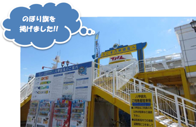 | 青森市メモリアルシップ八甲田丸船内と周辺において周知啓発活動を行いました。 「海の日」を記念してのイベントは19年前から開催しており、二日間共に晴天に恵まれ、多数の参加者がありました。 今年は、のぼり旗を立て「電波の相談コーナー」を行いましたが、家族連れが多く、思ったほどありませんでした。 |