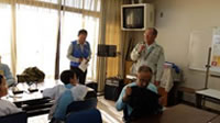 | 保安庁、警察、消防署と合同で行われる「H27年度鬼崎ヨットクラブ安全訓練」会場において、啓発活動を行いました。開会の全体会で、とくに関心が高い国際VHFや緊急信号機などの説明を行い機器の展示われたので、この場を活用して電波の適正利用を訴え,グッズ類を配布するなどの周知・啓発活動を実施しました。 | |
