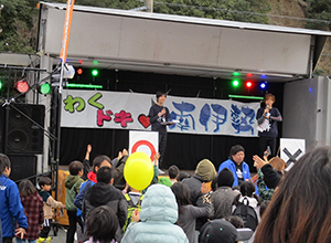 当日は、漁業が盛んな町ならではの新鮮な魚の販売、カツオやタイの刺身のふるまいもありました。地元中学校の吹奏楽部の演奏によるオープニング、お笑いライブではダンディ坂野さんのライブ、そして最後には餅まきもあり来場者は1日中イベントを楽しんでいたようです。(^^♪