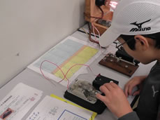 | 奈良県電波適正利用推進員協議会は、桜井市立桜井西小学校の科学クラブの4年から6年生の児童24名を対象に、@DVD「おもしろ電波教室」の視聴、Aモールス通信の説明、Bモールス練習機の製作を行いました。会場には、周知啓発用ののぼり及びポスターを掲示し、参加者にリーフレットなども配布しました。 参加者は、真剣にDVDを視聴し、モールス通信のお話を不思議そうに聞いていました。 モールス練習機に興味津々で、モールス練習機が完成した時には、スイッチを押し、トン、ツーの音を楽しそうに聞いていました。 |