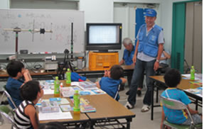 はじめに電波適正利用推進員が講師となり、オシロスコープを使用して「電波の見る」実験、電波の特徴(透過性)の実験で、電波の不思議さを体験してもらいました。
