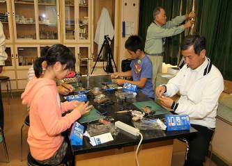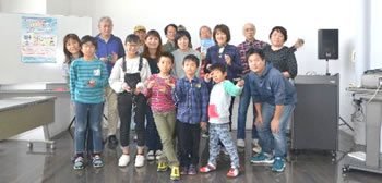 | 推進員の指導でラジオを組み立て | 参加者全員で記念写真 |