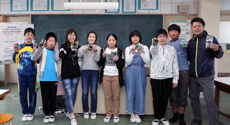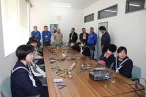 | おもしろ電波教室のDVDを見る生徒 | 集合写真 |