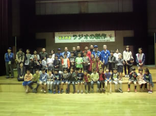 | ラジオ教室の案内板 | 参加者全員での集合写真 |