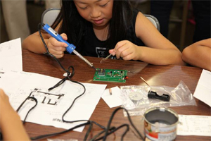 | はんだ半田付けする生徒 | 参加者の記念写真 |