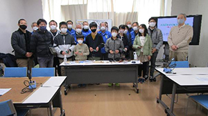 半田ゴテの取り扱いとリード線の処理などについて事前指導を行い、ラジオの製作を行いました。全員が完成させてイヤホンを耳に当て、ラジオの音が聞こえると、皆喜んでいました。その後には、推進員協議会の活動内容のことや技適マークの説明を行いました。