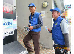 沖縄県電波適正利用推進員協議会は、2月14日(金)、総務省沖縄総合通信事務所監視調査課と共同で沖縄市中の町の繁華街において周知啓発活動を行いました。